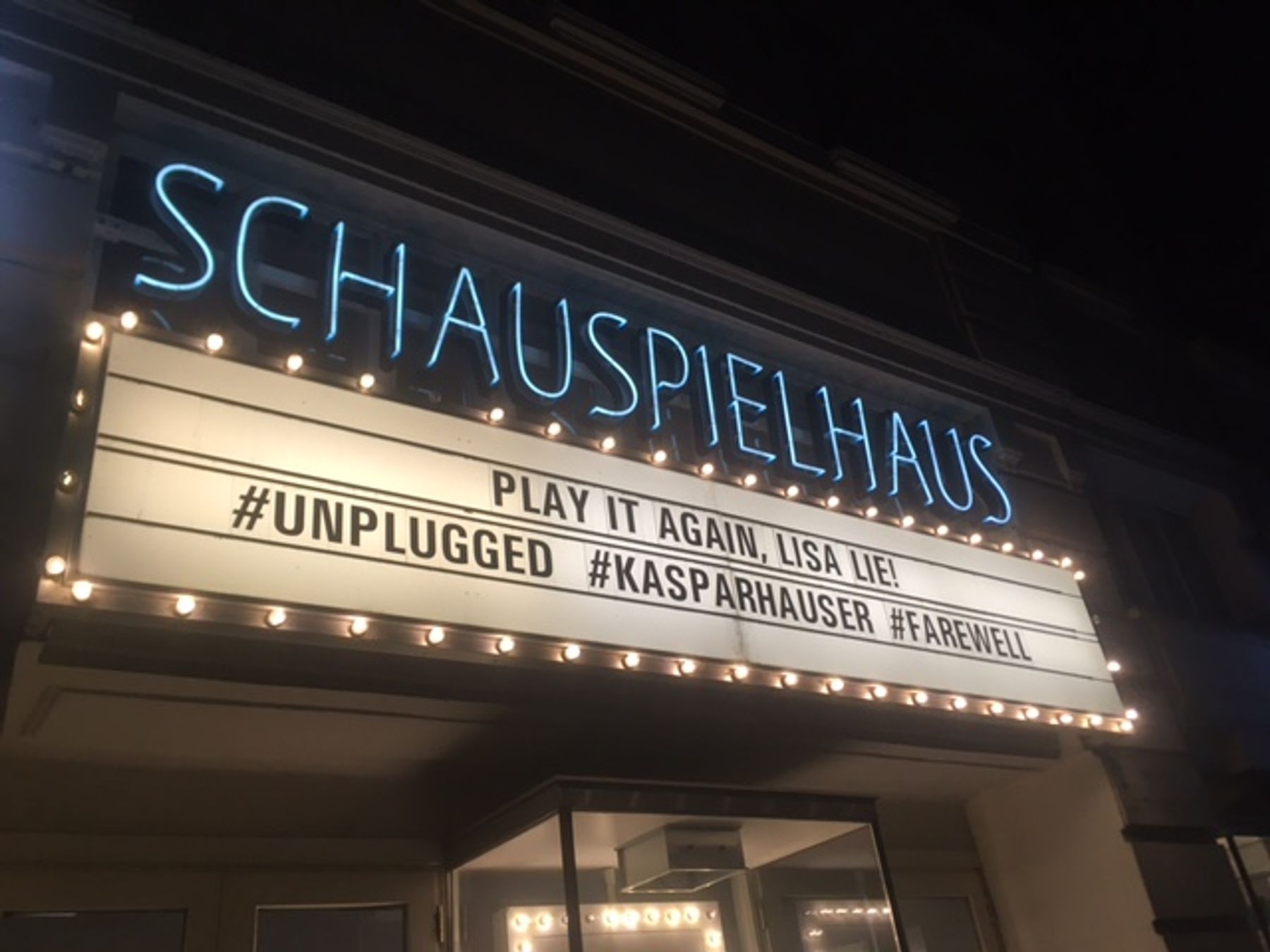 Lisa Lies tyskspråklige teaterdebut Kaspar Hauser oder die Ausgestoßenen könnten jeden Augenblick angreifen, eller på norsk Kaspar Hauser eller de utstøtte kan angripe når som helst, hadde urpremiere på Schauspielhaus Wien 1. februar 2017. Seks år etter, 10. februar i år, hadde den nypremiere på samme sted i en «unplugged» versjon.