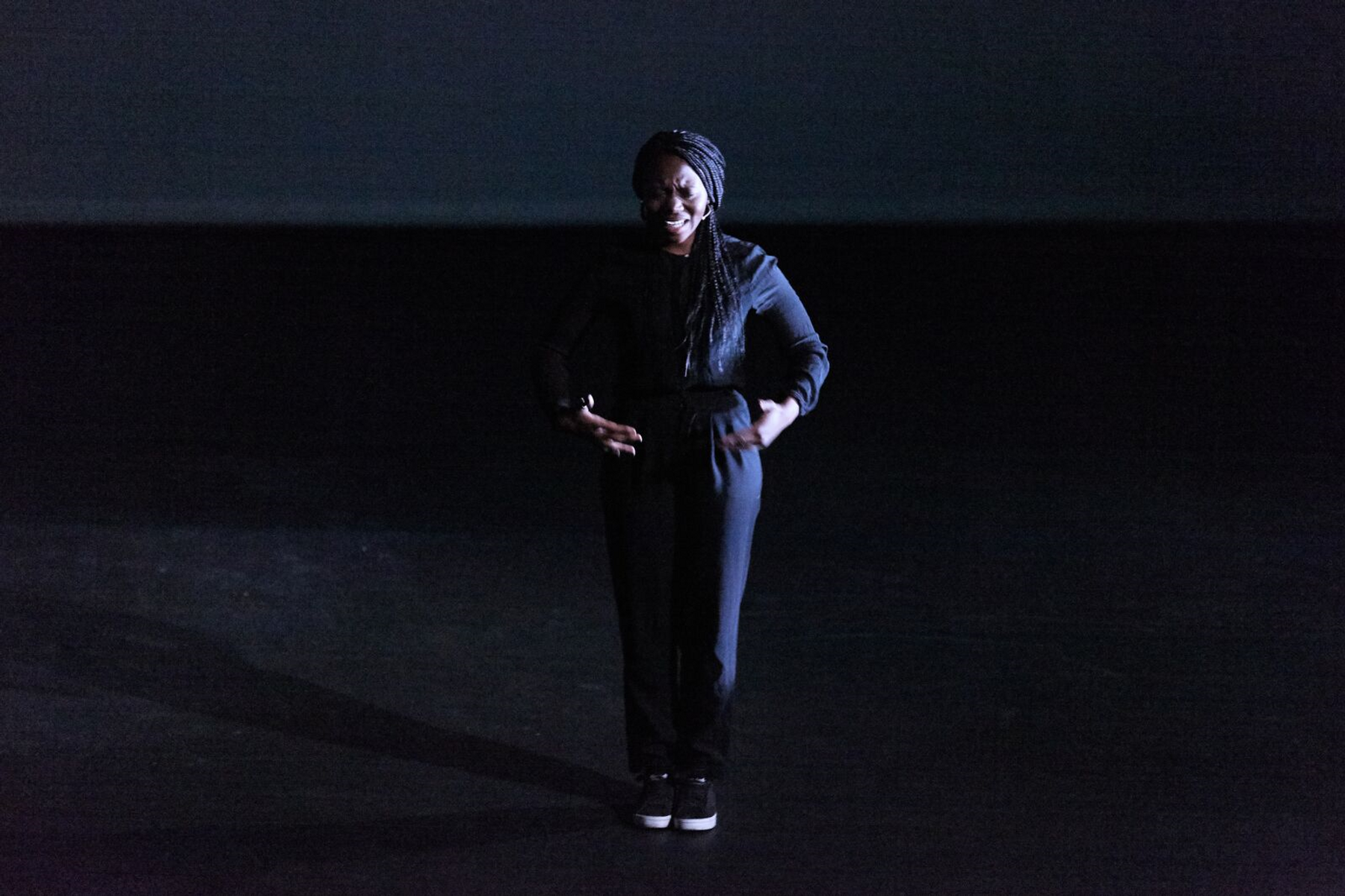 Det henger liksom ikke på greip og i et øyeblikk lurer jeg på om hun bare driver med oss, men jeg skjønner snart at det hele er en avspeiling av livet til et barn som blir revet vekk fra sin opprinnelse og plassert hos fremmede mennesker i et fremmed land. Noen ganger er det som om hun får tak i en flik av noe og er i ferd med å forstå sammenhenger og forløses som menneske, men så er det som om det glipper igjen og hun må begynne forfra. Det er sterkt og rørende, men vi får ikke lov å hvile i det, for snart kommer det opp et nytt spørsmål som skal vris og vendes på. Det gir en følelse av at denne happeningen kan vare hvor lenge som helst. Av og til får man følelsen av at et såkalt work in progress er en del av arbeidets identitet og bare må få lov å fortsette å være det.